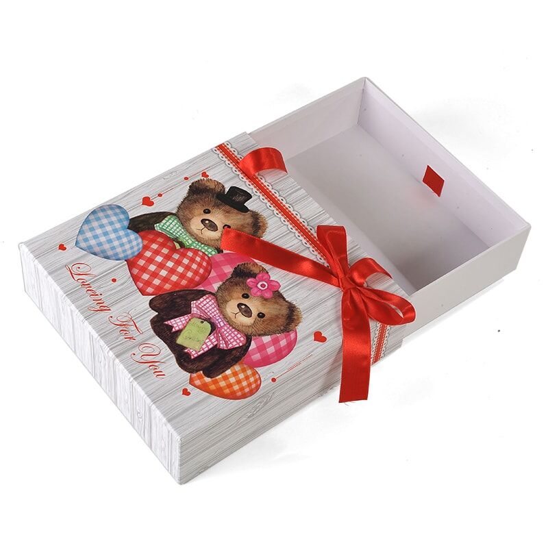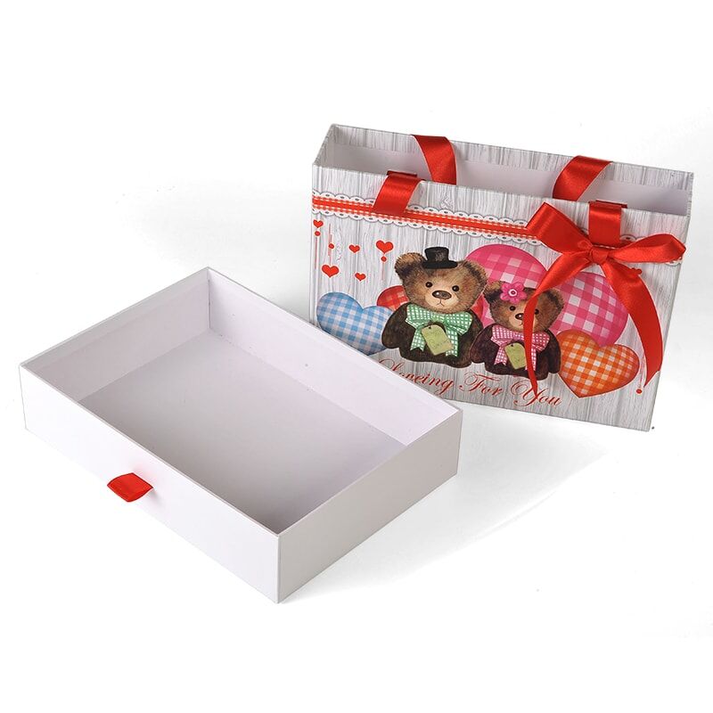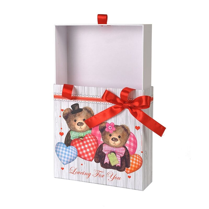 Our custom rigid drawer box is designed to balance both form and function. Its sliding drawer opening provides easy access to your gift. The sturdy construction offers reliable protection. While the playful design, combined with the ribbon decoration, adds an extra touch of elegance to make your gift stand out.